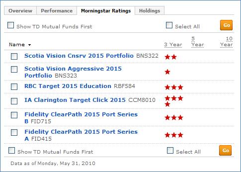 Morningstar Ratings: Provides 3 year, 5 year, and 10 year ratings